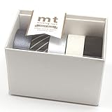 マットな黒のマステだけではなく、シルバーや光沢のあるグレー、キュートさもある白ドット、黒の斜めストライプの5本が入っています。