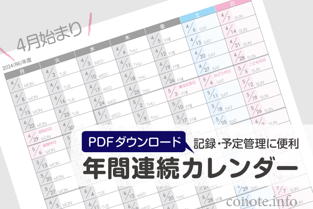 2024年度の年間連続カレンダー無料ダウンロードページです。マンスリーカレンダーを縦にぎゅっと縮めた形式で、1週間単位で年間を俯瞰できます。重複部分がないので週 […]