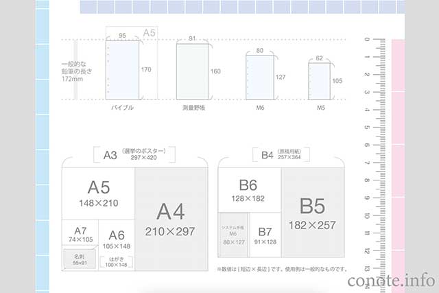 紙の大きさ、厚さの単位&換算表です。インデックスラベル貼付けガイドや25cm物差しの目盛りもあるので、資料整理や自作手帳の用紙を選ぶ際に役立ちます。 紙の大きさ […]